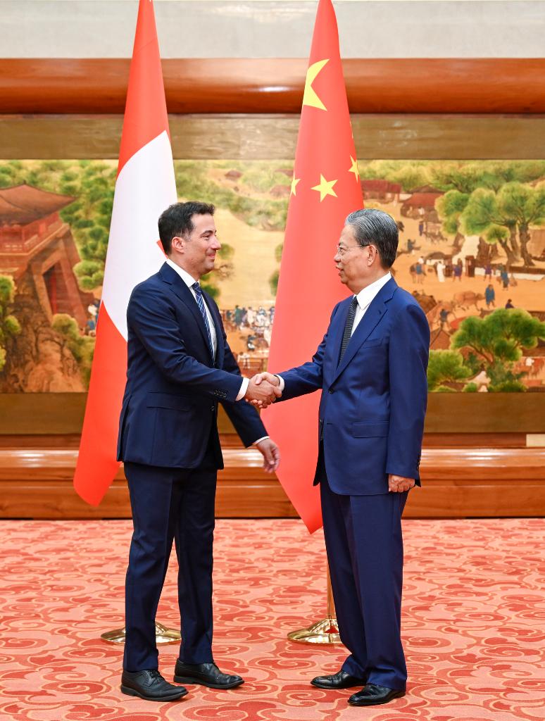 Pengerusi NPC Adakan Pertemuan dengan Presiden Dewan Negara Switzerland di Beijing