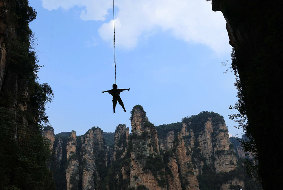 Aktiviti cabaran sukan ekstrem hayunan tali tinggi atau “rope swing” pertama telah diadakan di kawasan peranginan Wulingyuan, Zhangjiajie, provinsi Hunan pada 12 hingga 15 September ini.