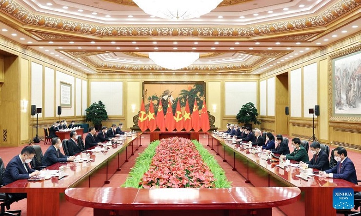 Setiausaha Agung Jawatankuasa Pusat Parti Komunis China (PKC) Xi Jinping mengadakan pertemuan dengan Setiausaha Agung Jawatankuasa Pusat Parti Komunis Vietnam (CPVCC) Nguyen Phu Trong di Dewan Besar Rakyat di Beijing semalam.