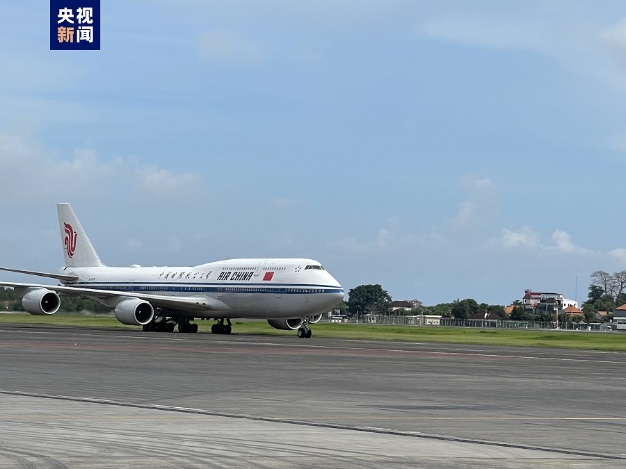 Presiden China, Xi Jinping tiba di Lapangan Terbang Antarabangsa Depansar Ngurah Rai Bali, Indonesia petang ini dengan menaiki pesawat khas.