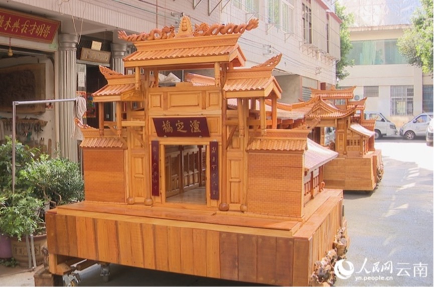 Dengan menggunakan teknik pertukangan purba, seorang pengukir kayu di bandar Yuxi, Provinsi Yunnan di barat daya China telah menghasilkan sebuah model kayu jambatan rantai besi Luding. Jambatan tersebut merupakan lokasi pertempuran penting yang mengubah perjalanan sejarah negara ini.