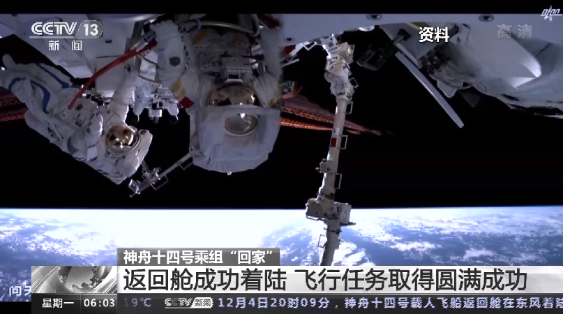 Kapal angkasa pembawa angkasawan Shenzhou-14 selamat mendarat di tapak pendaratan Dongfeng, wilayah Mongolia Dalam di utara China pada pukul 8.09 malam semalam, dan tiga angkasawan iaitu Chen Dong, Liu Yang dan Cai Xuzhe berada dalam keadaan selamat dan sihat, kata Agensi Angkasa Bermanusia China (CMS).