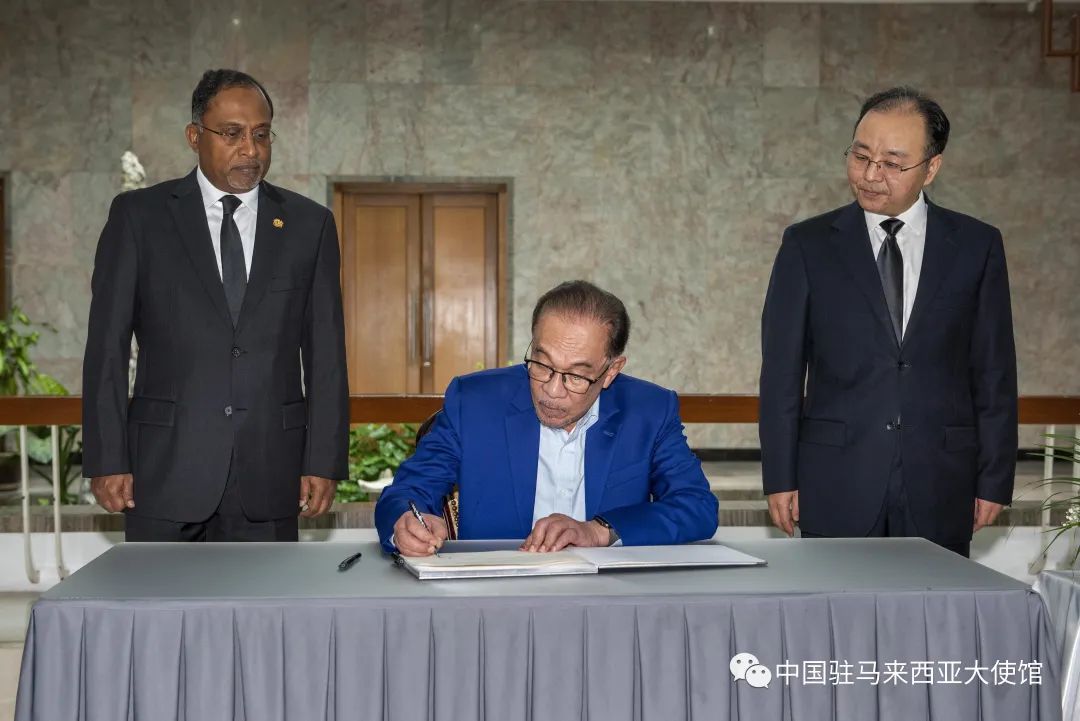 Perdana Menteri Malaysia, Datuk Seri Anwar Ibrahim memberi penghormatan terakhir kepada bekas Presiden China, Jiang Zemin di Kedutaan Besar China ke Malaysia di Kuala Lumpur, ditemani Menteri Luar, Datuk Seri Dr Zambry Abdul Kadir hari ini.
