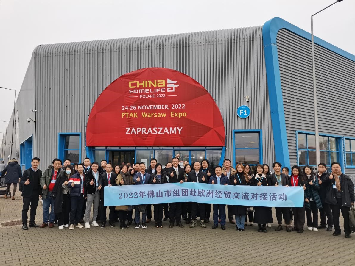 Delegasi ekonomi dan perdagangan bandar Foshan, provinsi Guangdong mengambil bahagian dalam aktiviti pertukaran ekonomi dan perdagangan di Warsaw, Poland, pada Disember 2022. (foto: Biro Perdagangan Bandar Foshan)