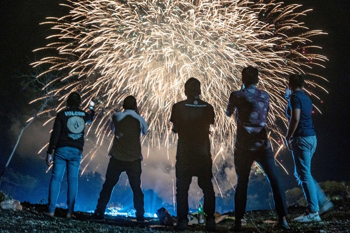 Orang sedang menonton bunga api sambutan Tahun Baharu di Pulau Bali pada 31 Disember 2022. (Sumber gambar: Xinhua)