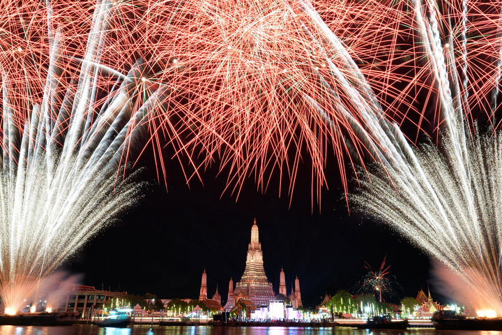 Bunga api menerangi langit di Kuil Wat Arun, Bangkok, Thailand, pada 1 Januari, 2023. (Sumber gambar: Xinhua)