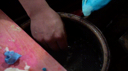 Tukang arca diharuskan kerap memasukkan tangan ke air sejuk agar mentega tidak cair.