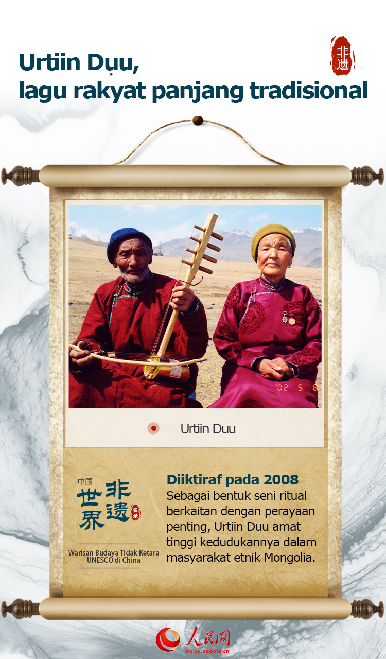 Item “Urtiin Duu, lagu rakyat Panjang tradisional” ditambah dalam senarai perwakilan warisan budaya tidak ketara kemanusiaan UNESCO pada 2008.