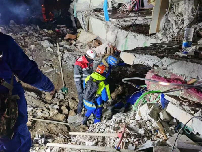 Pasukan Mencari dan Menyelamat Blue Sky China (BSR) menjalankan tugas menyelamat di Malatya, Turki. (foto diberikan oleh Zhang Yunlu)