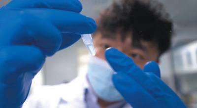 Penyelidik di Makmal Ekologi Sel Haihe Tianjin sedang menganalisis dan mengekstrak bahan genetik daripada sel. (Foto oleh He Meitong)