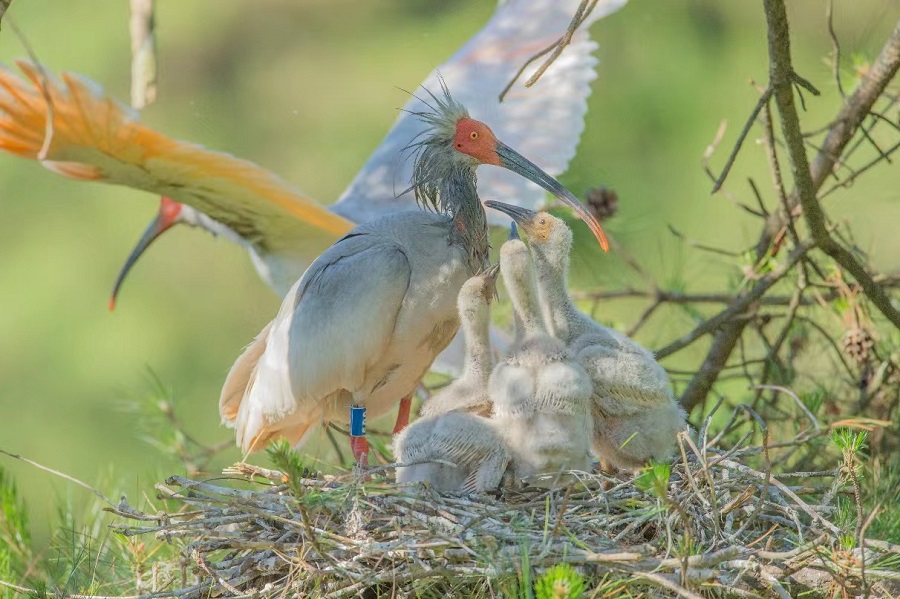 Terdapat sekeluarga sekendi berjambul yang menetap di sarang sebatang pokok besar di kaunti Ningshan provinsi Shaanxi.