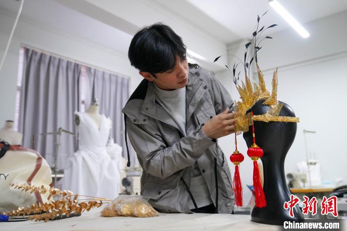 Pei Youshu, jurugaya Gen Z dari Indonesia yang belajar di China, sedang sibuk menyusun rekaan aksesori rambut. (Foto/Wang Yizhao)