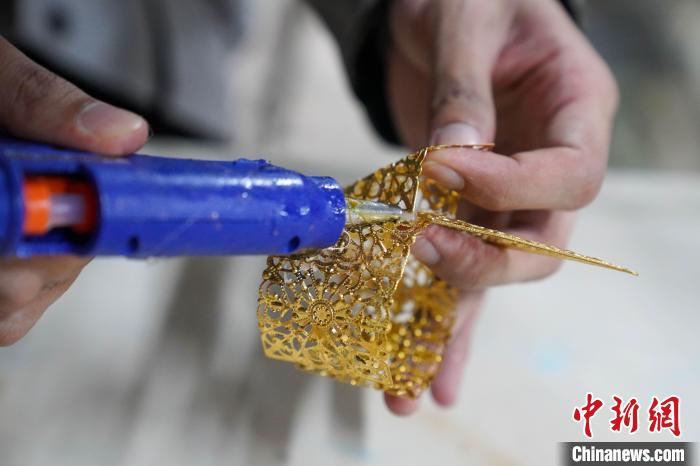 Pei Youshu, jurugaya Gen Z dari Indonesia yang belajar di China, sedang membuat aksesori. (Foto/Wang Yizhao)