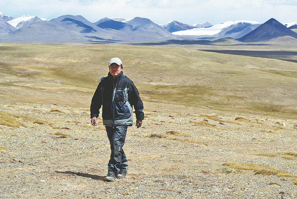 Saintis penderiaan jauh Liu Shaochuang semasa bekerja di kawasan terpencil di Pergunungan Tangula di daerah Amdo, wilayah autonomi Tibet, tempat pasukannya mengesahkan hulu Sungai Nujiang. (foto: Shui Xiaojie/China News Service)