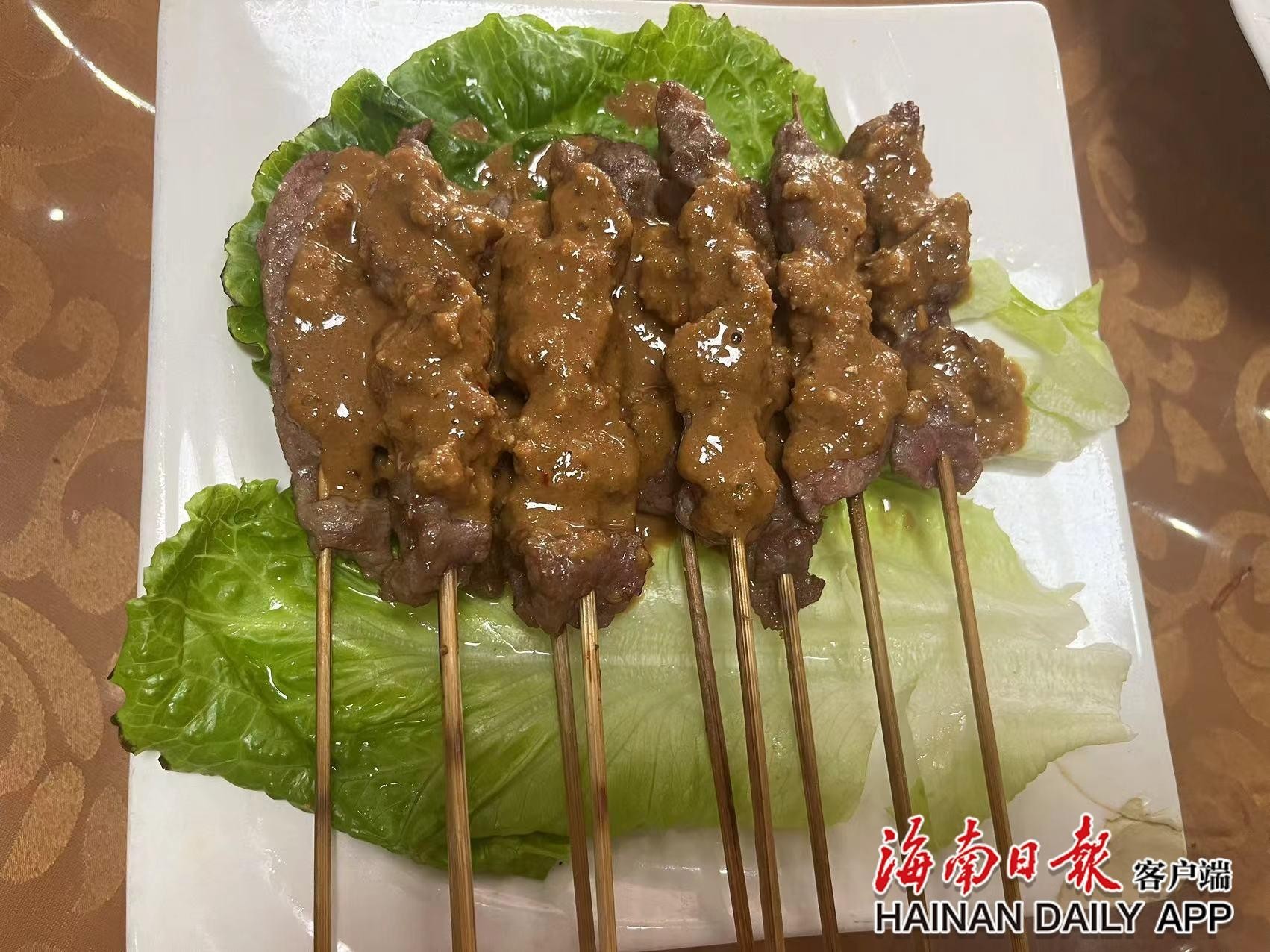 Sate daging lembu yang disajikan di Restoran Indonesia ISTANA. (Foto/Hainan Daily)