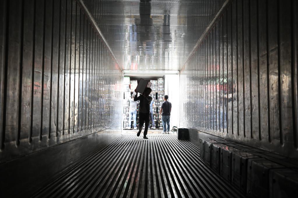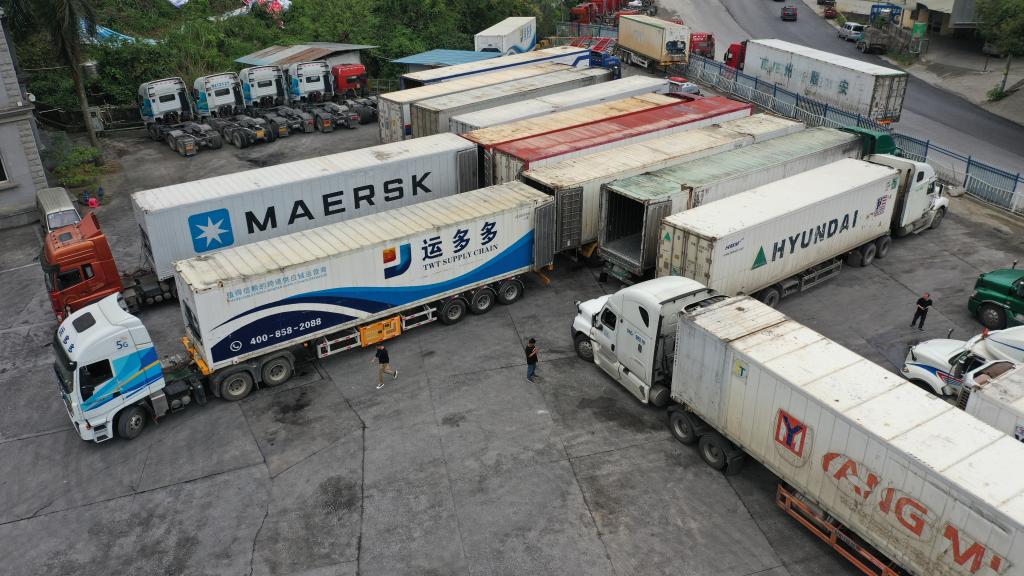 Lori-lori yang mengangkut buah-buahan dari Vietnam. (Foto/Xinhua)