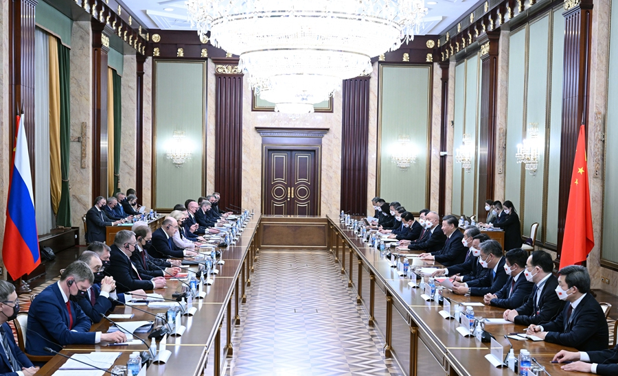 Mikhail Mishustin berkata, perkembangan hubungan bilateral Rusia-China yang berada pada tahap yang tertinggi dalam sejarah kondusif bagi usaha memelihara amalan multilateralisme dan merancakkan multipolarisasi di sebalik situasi antarabangsa dewasa ini. Rusia bersedia memperhebat kerjasama dengan China dalam perdagangan pelaburan, sumber tenaga, gas asli, penggunaan tenaga atom secara damai, penerbangan angkasa lepas, inovasi sains dan teknologi, dan logistik pengangkutan rentas sempadan, di samping memperkasa interaksi berhubung usaha memastikan keselamatan rantaian industri dan pembekalan serta keselamatan bijirin.