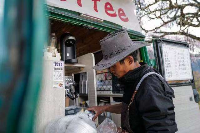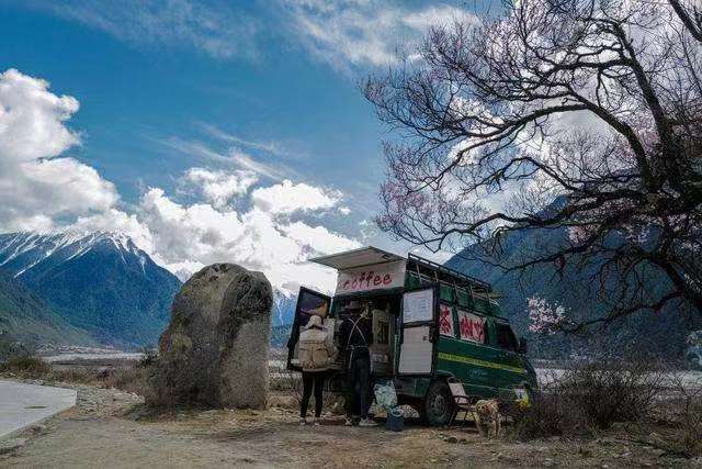 Di Lembah Bunga Pic Bodui, wilayah Tibet China, sebuah kereta hijau yang parkir di bawah pokok pic untuk menjual kopi telah berjaya menarik perhatian pelancong.