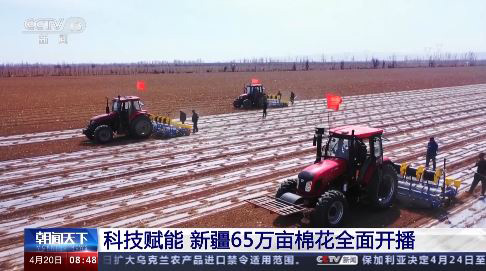 Usaha penyemaian kapas telah dilancarkan di tanah seluas 43 ribu hektar di kaunti Manas, Wilayah Autonomi Uygur Xinjiang mutahir ini. Pemasangan dan pengaplikasian sistem pandu diri navigasi Beidou model baharu membantu meningkatkan kecekapan penyemaian itu.