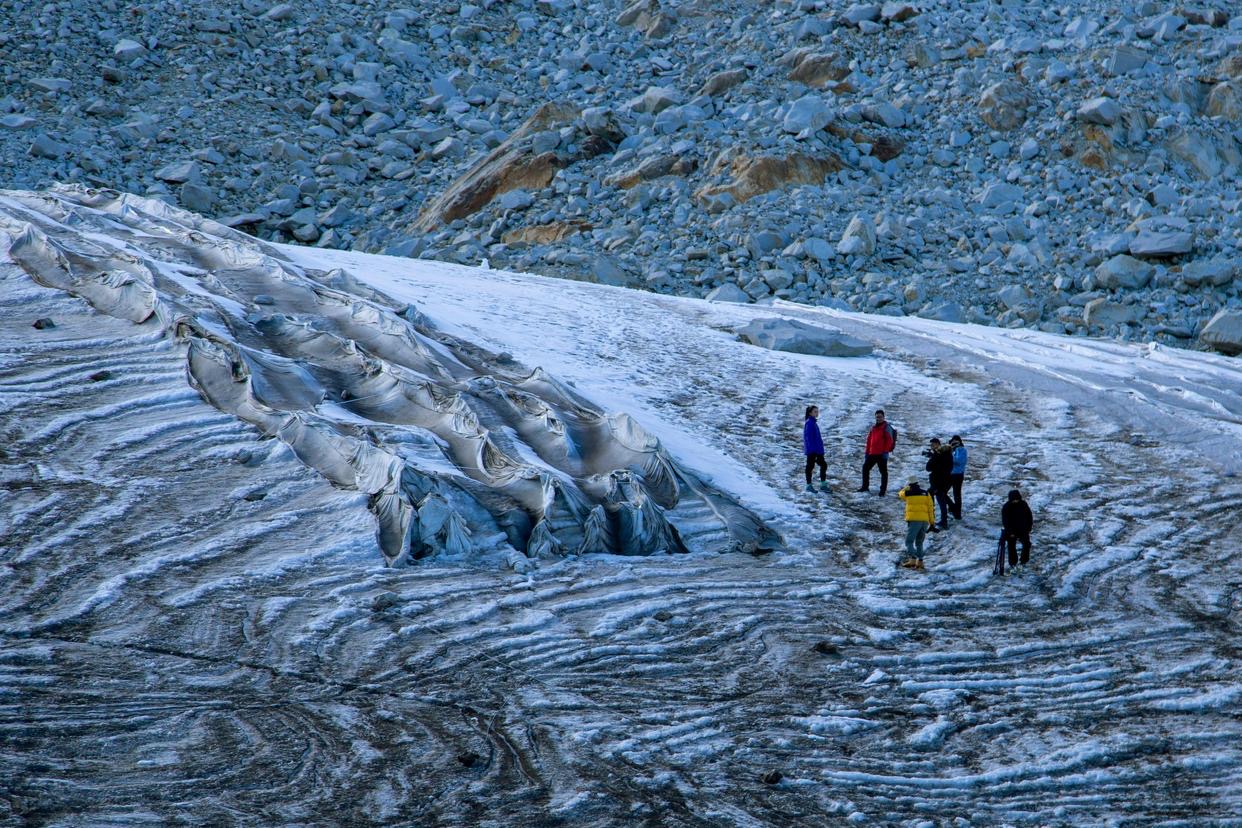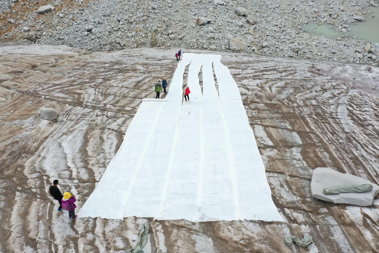 Mereka menutup permukaan glasier di dalam zon itu dengan 'selimut' yang diperbuat daripada bahan reflektif dan penebat terma.