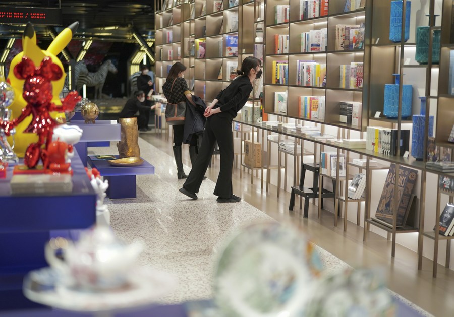 | Pengunjung melihat buku di sebuah kedai buku di Xi’an, provinsi Shaanxi, barat laut China pada 24 Januari 2022. (Xinhua/Shao Rui) |
