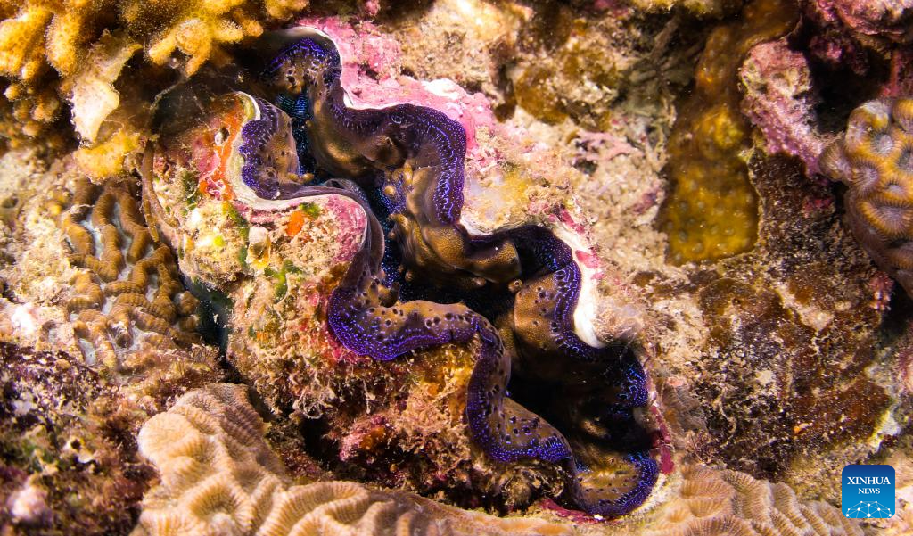 | Foto yang diambil pada 17 Mei 2023 ini menunjukkan kima gergasi di sebuah ladang ternak marin di perairan Pulau Wuzhizhou di Sanya, provinsi Hainan, selatan China. (Xinhua/Yang Guanyu) |