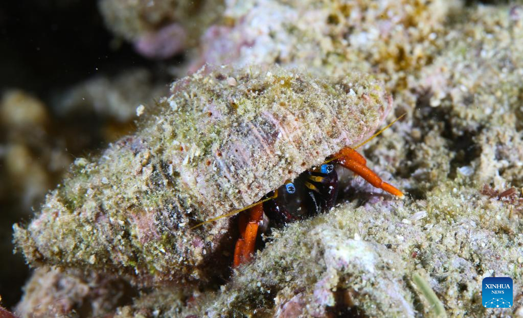 | Foto yang diambil pada 24 Mei 2021 ini menunjukkan seekor umang-umang di sebuah ladang ternak marin di perairan Pulau Wuzhizhou di Sanya, provinsi Hainan, selatan China. (Xinhua/Yang Guanyu) |