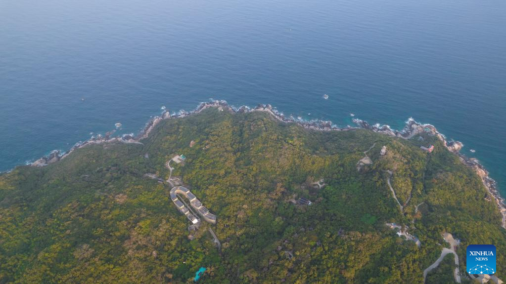 | Foto udara yang diambil pada 18 Mei 2023 ini menunjukkan sebuah ladang ternak marin di perairan Pulau Wuzhizhou di Sanya, provinsi Hainan, selatan China. (Xinhua/Fan Yuqing) |
