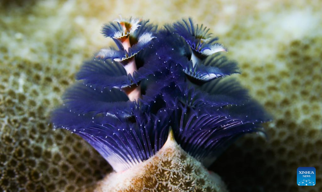 | Foto yang diambil pada 23 Mei 2021 ini menunjukkan spesies cacing pokok Krismas di sebuah ladang ternak marin di perairan Pulau Wuzhizhou di Sanya, provinsi Hainan, selatan China. (Xinhua/ Yang Guanyu) |