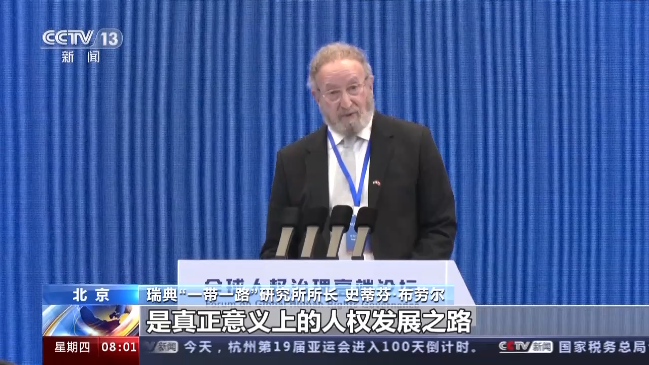Ketua Institusi Pengajian Inisiatif Jalur dan Laluan (BRI) Sweden, Stephen Brawer menyatakan bahawa tahun ini ulang tahun ke-10 BRI anjuran Presiden Xi Jinping, dan beliau yakin BRI adalah jalan damai yang benar-benar untuk mengembangkan hak asasi manusia sekali gus membasmi kemiskinan sejagat. Namun, yang menyesalkan itu adalah modus operandi Amerika Syarikat, Britain dan Kumpulan Tujuh Negara yang tidak berhenti dalam mencoret arang pada muka China, mencerminkan kepanikan dan kejahilan mereka tentang keadaan China pada zaman ini dan tamadun China yang bersejarah 5,000 tahun.