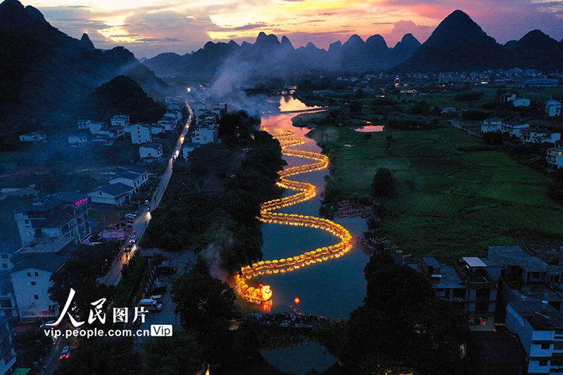 Pada malam 18 Jun, seekor "naga gergasi" sepanjang 550 meter yang dibuat oleh 55 buah rakit buluh berapung di Sungai Yulong di bandar Guilin, wilayah autonomi Zhuang Guangxi, melengkapkan pemandangan yang mengagumkan.