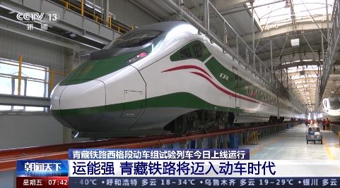 Ujian operasi kereta api EMU, Fuxing, di landasan kereta api Qinghai-Tibet seksyen Xining-Golmud dijalankan pada Jumaat. Selepas ujian itu selesai, tren Fuxing akan mula digunakan di landasan kereta api Qinghai-Tibet seksyen tersebut bermula 1 Julai.