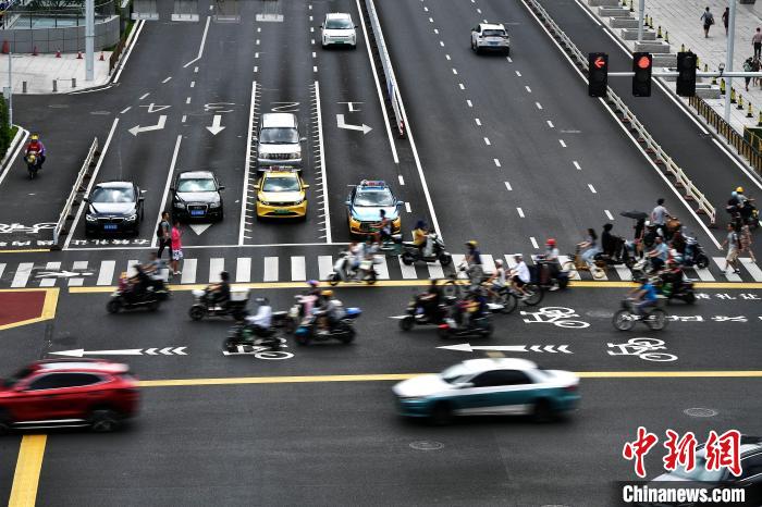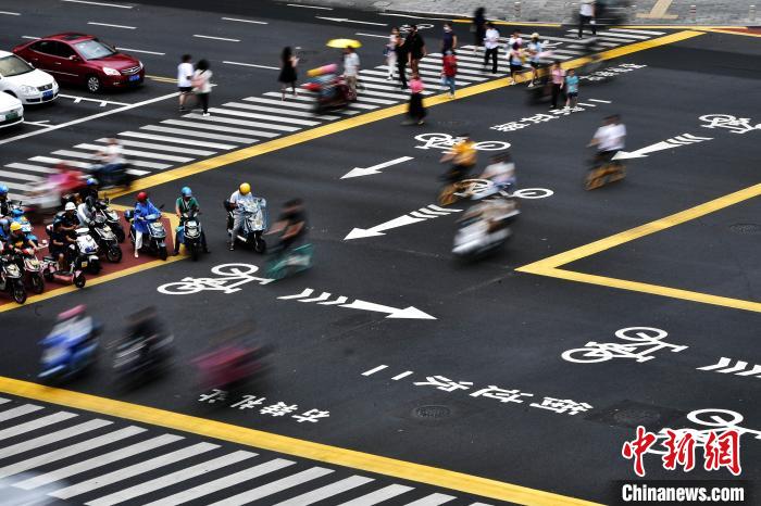 | Gambar ini menunjukkan pejalan kaki dan kenderaan melintasi persimpangan. (Foto/Zhang Bin) |