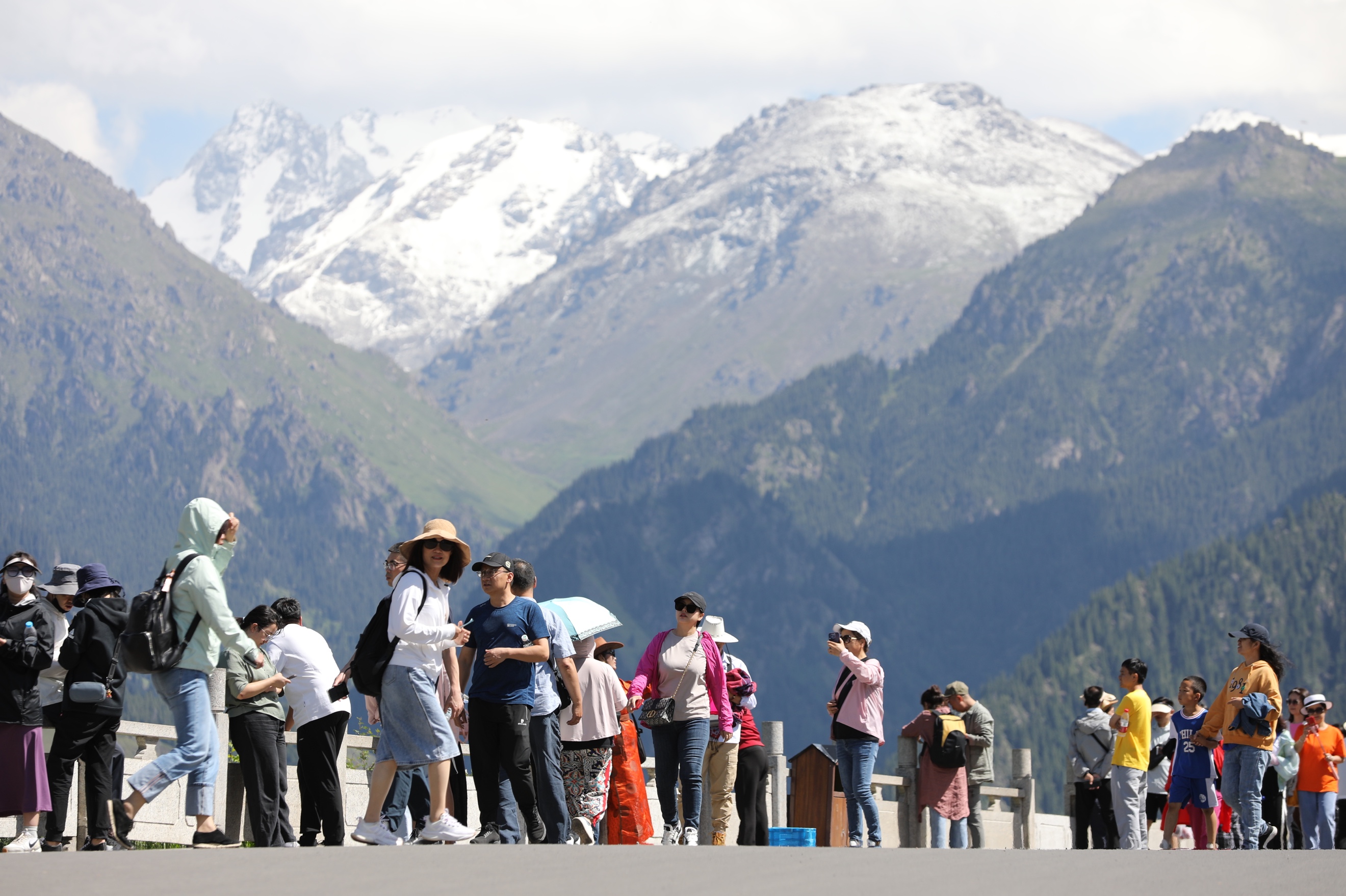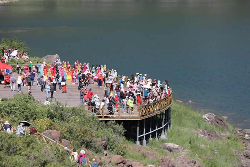 Pada hari terakhir sambutan hari kebesaran umat Islam itu di Wilayah Autonomi Uygur Xinjiang, China, kelihatan pelancong tempatan dan asing masih berpusu-pusu ke destinasi pelancongan Tasik Tianchi Gunung Tianshan yang disenaraikan sebagai Warisan Dunia oleh UNESCO.