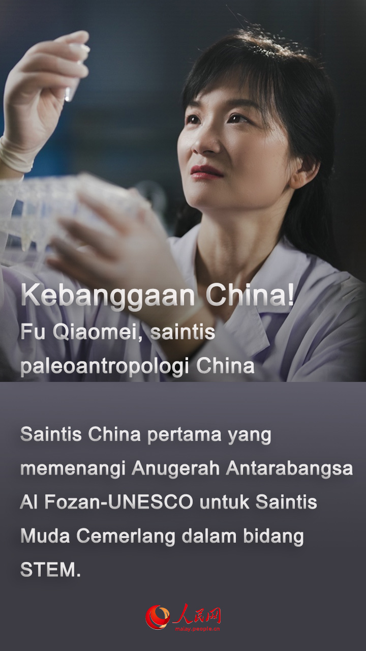 Fu Qiaomei, penyelidik dari Institut Paleontologi Vertebrata dan Paleoantropologi di bawah Akademi Sains China dinamakan pemenang Anugerah Antarabangsa Al Fozan-UNESCO untuk Saintis Muda Cemerlang dalam Bidang Sains, Teknologi, Kejuruteraan dan Matematik (STEM) di ibu pejabat UNESCO di Paris, Perancis pada 19 Jun. Anugerah ini diberikan sebagai pengiktirafan terhadap sumbangan besar beliau dalam penyelidikan sejarah genetik manusia di Eurasia pada zaman awal melalui cara pembinaan genom, membawa pandangan baharu tentang kesihatan dan penyesuaian manusia daripada perspektif evolusi.