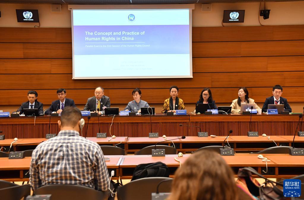 Wacana “Konsep dan Praktik Hak Asasi Manusia China” anjuran Persatuan Pengajian Hak Asasi Manusia China diadakan di Palais Des Nations, Genava semalam sempena perasmian mesyuarat ke-53 Majlis Hak Asasi Manusia PBB. Pakar-pakar berkenaan telah memberi taklimat tentang pendidikan hak asasi manusia di China, hak dan kepentingan kaum wanita di Xinjiang, sistem penjelmaan semula Buddha Hidup Tibet dan kebebasan beragama, modenisasi ala China dan pembangunan usaha hak asasi manusia, bohongan tentang apa yang disebut 'kerja paksa' di Xinjiang, perlindungan dan pembangunan bahasa serta tulisan di Xinjiang, dan hakikat sejarah hubungan Tibet dengan Tanah Air.