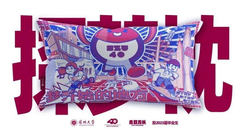 Terdapat empat jenis corak pada bahagian depan bantal itu, masing-masing adalah bangunan ikonik bandar Shenzhen dan Universiti Shenzhen.