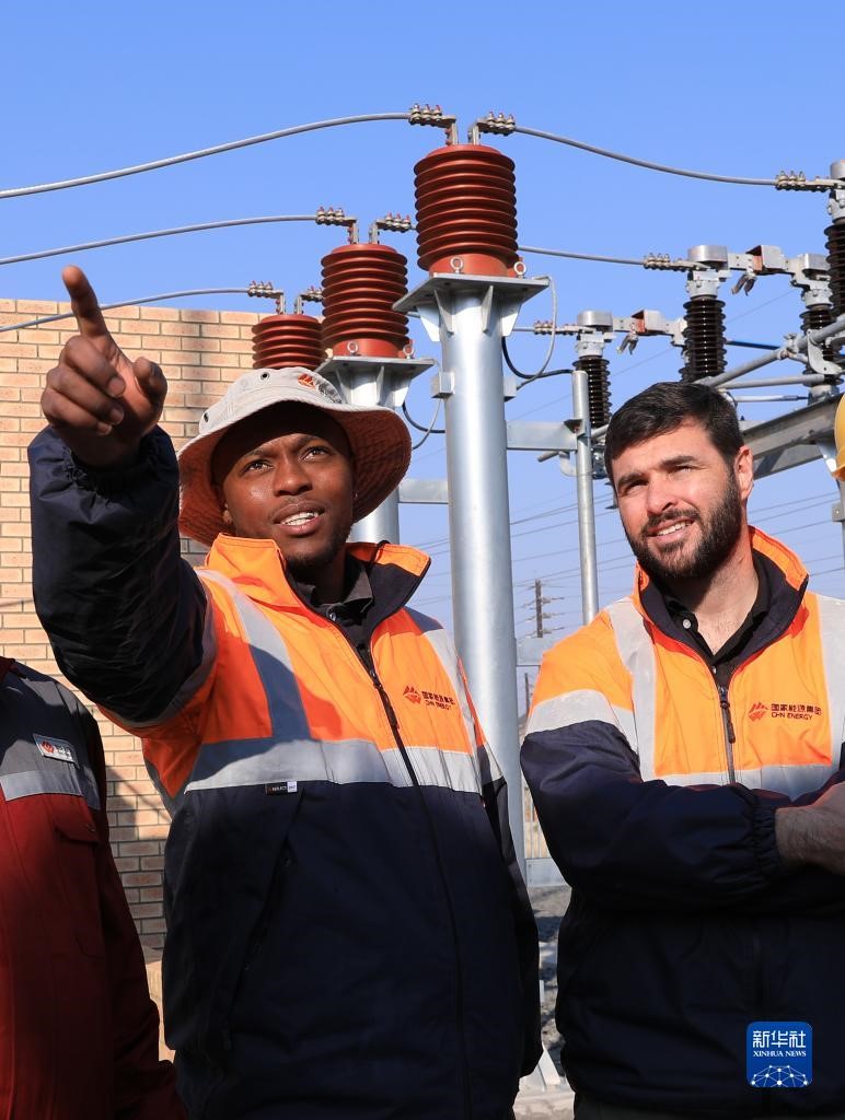 | Kakitangan pencawang yang juga penduduk setempat sedang memantau keadaan pencawang projek loji kuasa angin De Aar pada 10 Ogos. (Foto/Xinhua) |