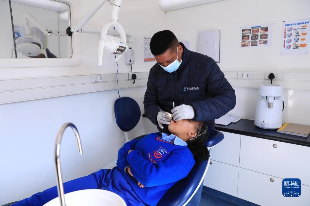 | Pelajar tempatan menerima rawatan di klinik bergerak milik Longyuan South Africa Renewables di De Aar, Afrika pada 10 Ogos. (Foto/Xinhua) |