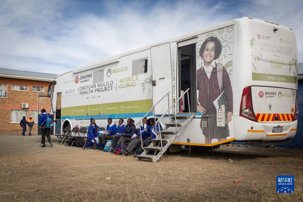 | Gambar yang diambil pada 25 Julai menunjukkan pelajar tempatan beratur di depan klinik bergerak milik Longyuan South Africa Renewables. (Foto/Xinhua) |