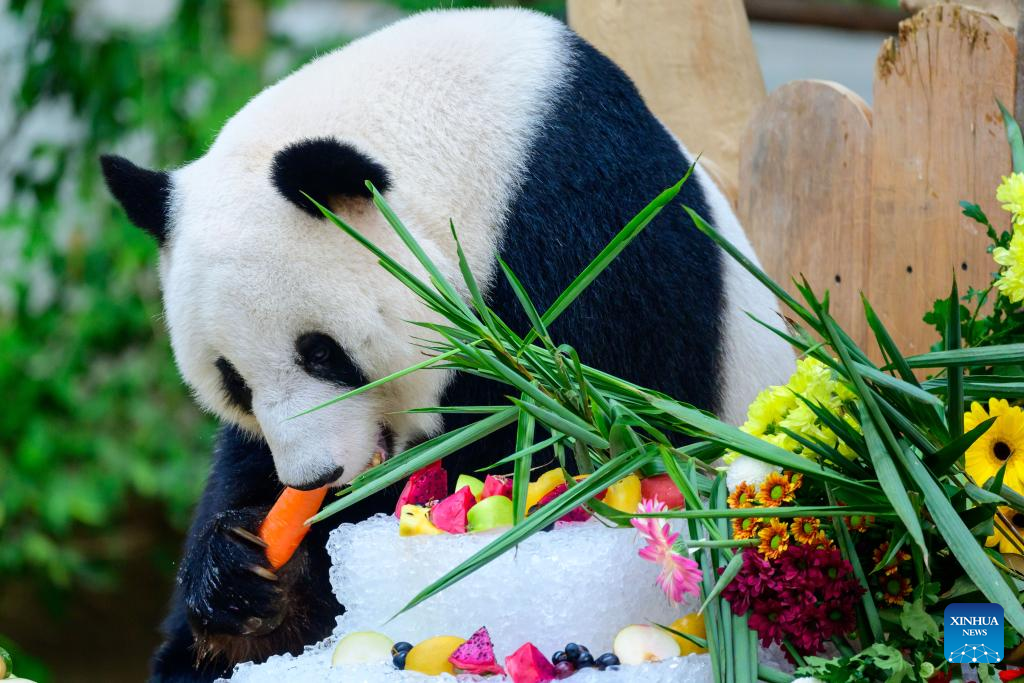 Dalam satu majlis, kedua-dua ekor panda yang berperanan penting dalam mempromosikan hubungan erat dan harmoni antara China dan Malaysia sejak tiba di Kuala Lumpur pada 2014 itu dihadiahkan dengan "kek ais" serta hidangan lain sebagai tanda sambutan hari istimewa mereka di Pusat Pemuliharaan Panda Gergasi, Zoo Negara.