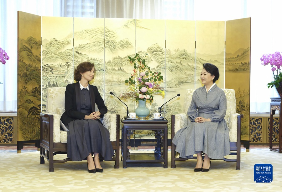 Isteri Presiden Xi Jinping yang juga Duta Khas Pertubuhan Pendidikan, Saintifik dan Kebudayaan Bangsa-Bangsa Bersatu (UNESCO) bagi Pendidikan Kanak-kanak Perempuan dan Wanita, Prof. Peng Liyuan, bersama-sama dengan Ketua Pengarah Agung UNESCO Audrey Azoulay menghadiri upacara pemberian Anugerah Pendidikan Kanak-kanak Perempuan dan Wanita UNESCO 2023 di sini pada Khamis.