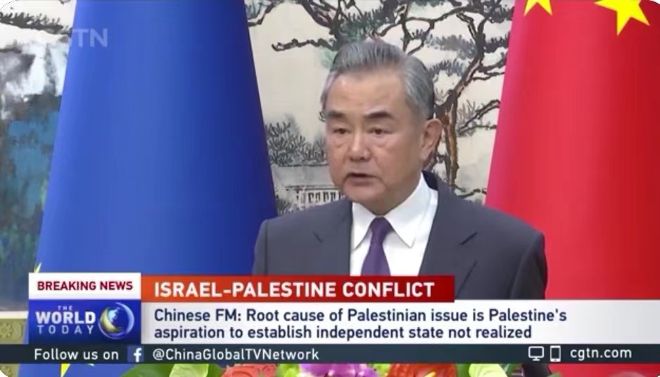 Situasi semasa di Palestin adalah kritikal pada masa ini. China berpendapat bahawa melaksanakan gencatan senjata secepat mungkin untuk mengelakkan konflik dan ketegangan terus memuncak adalah perkara yang paling mustahak ketika ini.