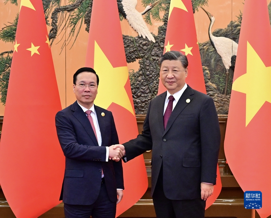 Presiden China Xi Jinping mengadakan pertemuan dengan rakan sejawatnya dari Vietnam Vo Van Thuong yang berada di Beijing untuk menghadiri Forum Kerjasama Antarabangsa Jalur dan Laluan (BRF) edisi ketiga, pagi tadi.