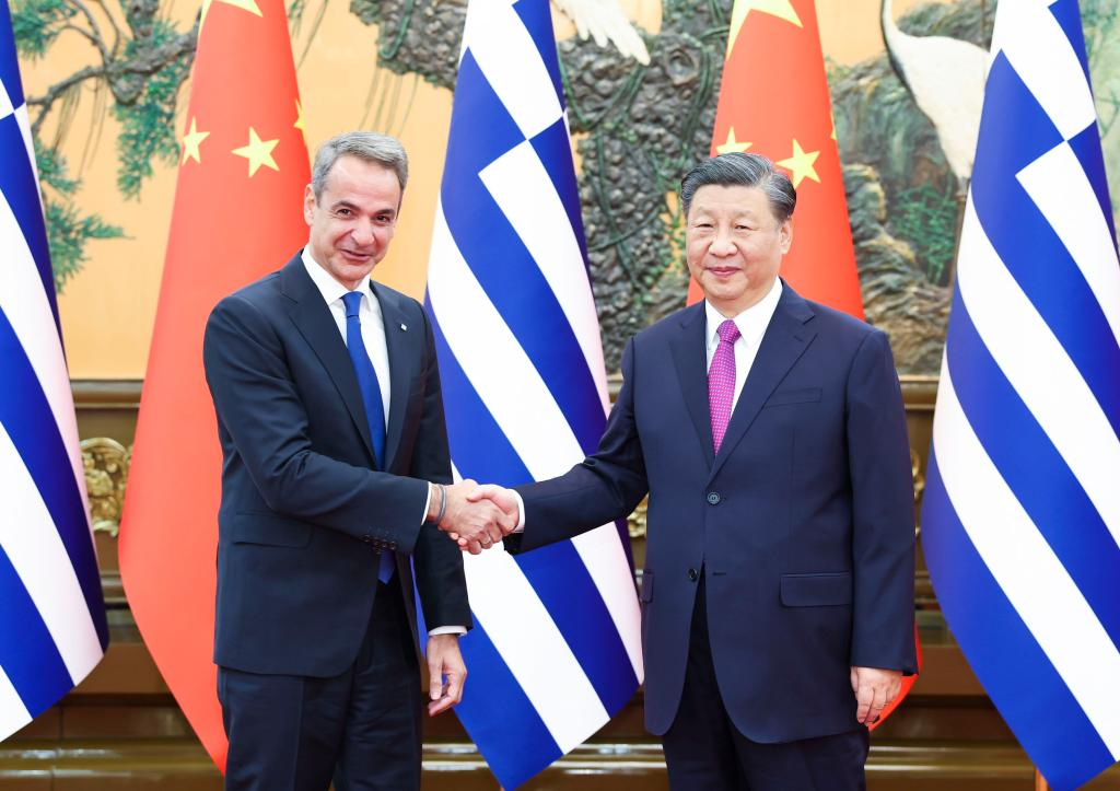 Presiden China, Xi Jinping ditemui Perdana Menteri Greece, Kyriakos Mitsotakis di Dewan Besar Rakyat Beijing petang Jumaat lalu.