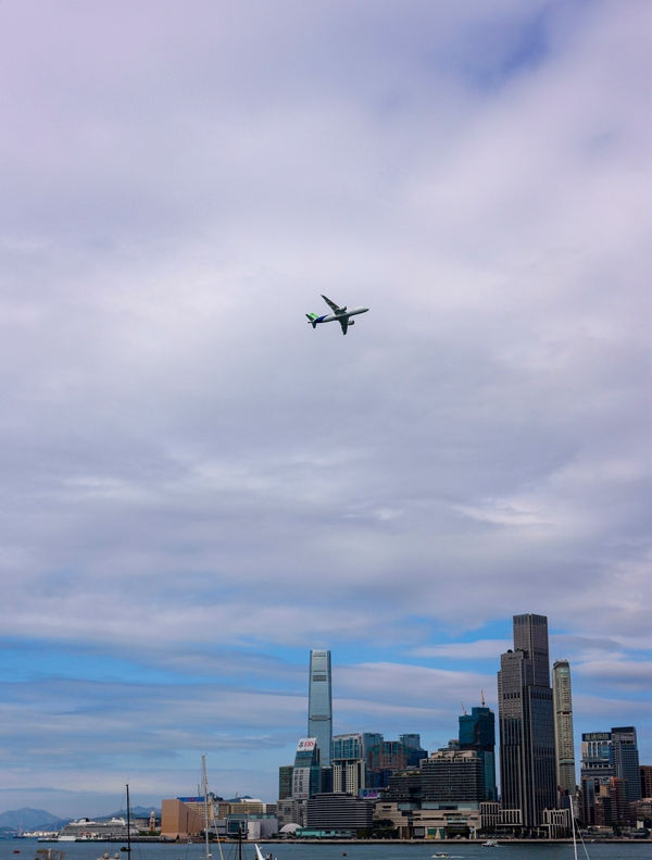 Pesawat itu berlepas dari Lapangan Terbang Antarabangsa Hong Kong, melintasi ruang udara Pelabuhan Victoria dan mengelilingi pulau Hong Kong dua kali.