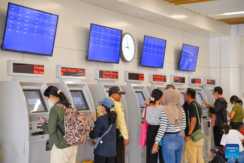 | Penumpang membeli tiket di mesin tiket di Stesen Halim di Jakarta, Indonesia, 17 Disember 2023. (Xinhua/Xu Qin) |