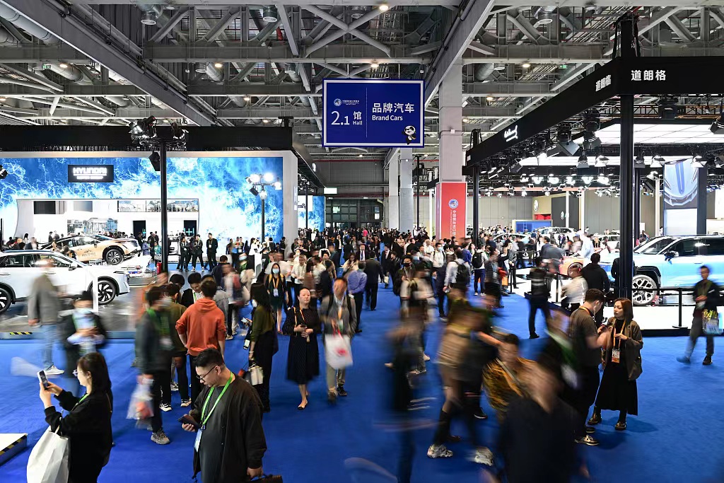 | Di Shanghai pada 6 November 2023, pengunjung di ruang pameran kenderaan Ekspo Import Antarabangsa China (CIIE). |