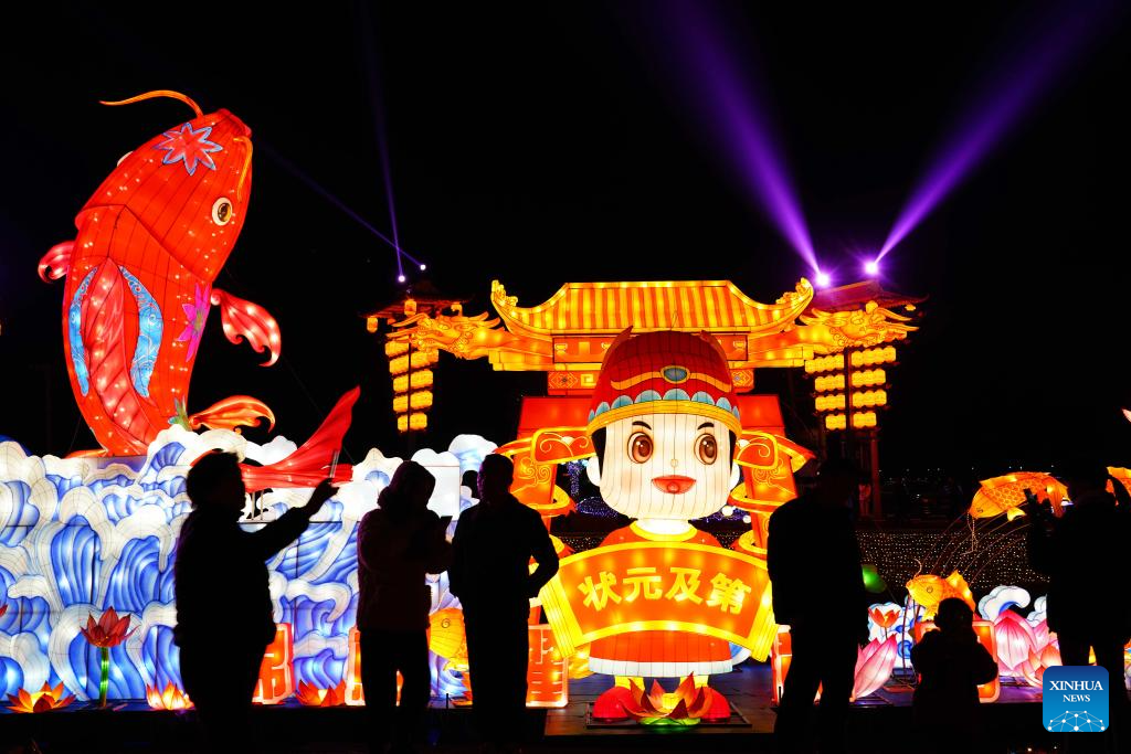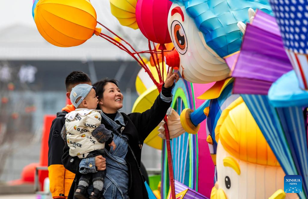 | Penduduk melihat tanglung di sebuah pusat sukan di bandar Qianxi, provinsi Guizhou, barat daya China, 14 Januari 2024. (Xinhua/Fan Hui) |