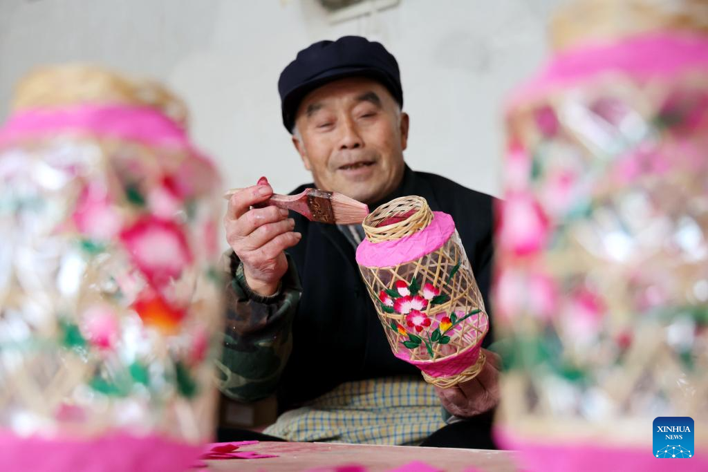 | Seorang seniman membuat tanglung di Binzhou, provinsi Shandong, timur China, 14 Januari 2024. (Xinhua/Chu Baorui) |